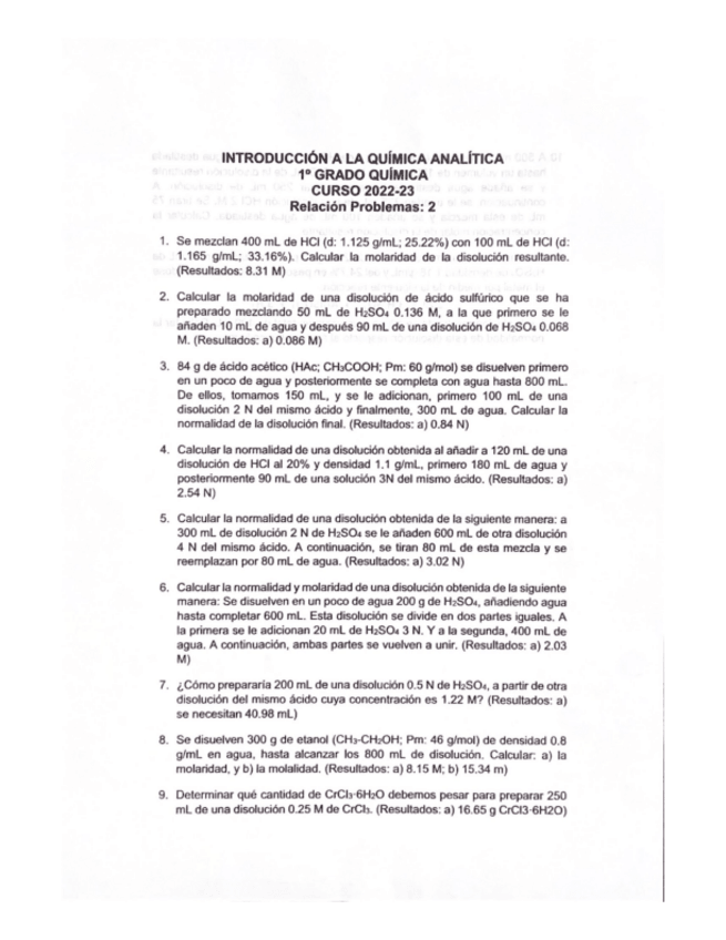 He publicado nuevos ejercicios de 1º Introducción a la Química Analítica: Relacion-2.pdf