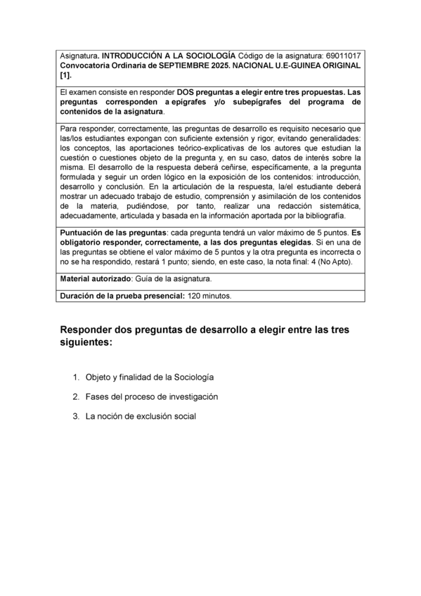 Examen de introducción a la sociologia de setiembre del 2025. Nota del examen: 9