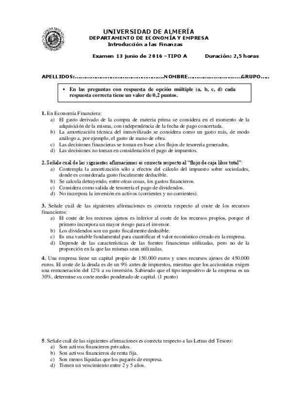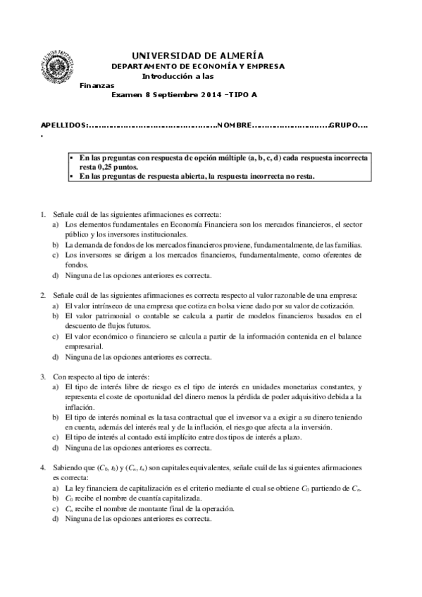 He publicado nuevos examenes de 1º Introducción a las Finanzas: 2016-Examen IF-Junio A.pdf