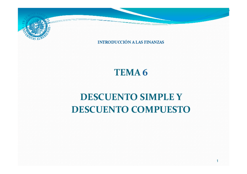 He publicado nuevos apuntes de 1º Introducción a las Finanzas: TEMA-6-DESCUENTO-SIMPLE-Y-DESCUENTO-COMPUESTO.pdf