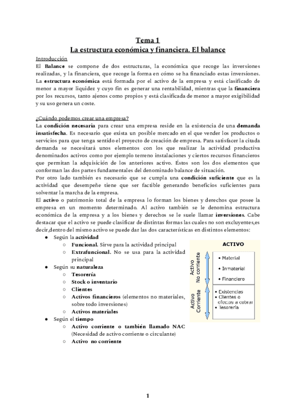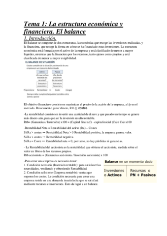 Tema 1- la Estructura Económica y Financiera. el Balance.