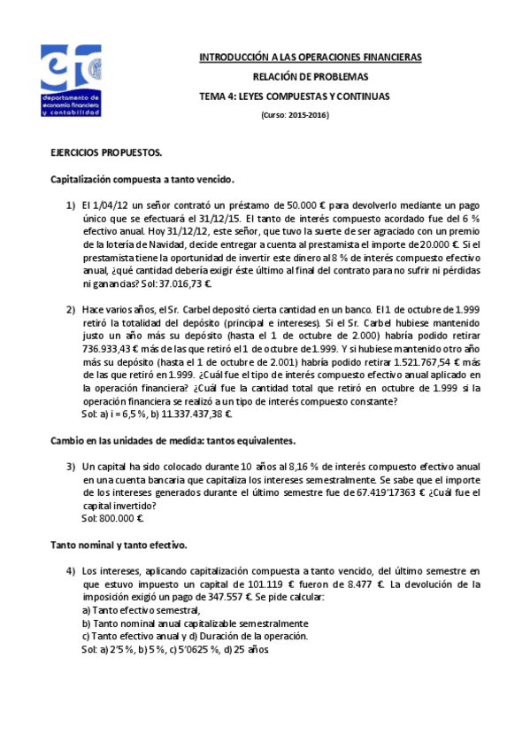 He publicado nuevos ejercicios de 1º Introducción a las Operaciones Financieras: EJERCICIOS RESUELTOS TEMAS 2-4