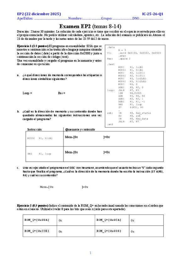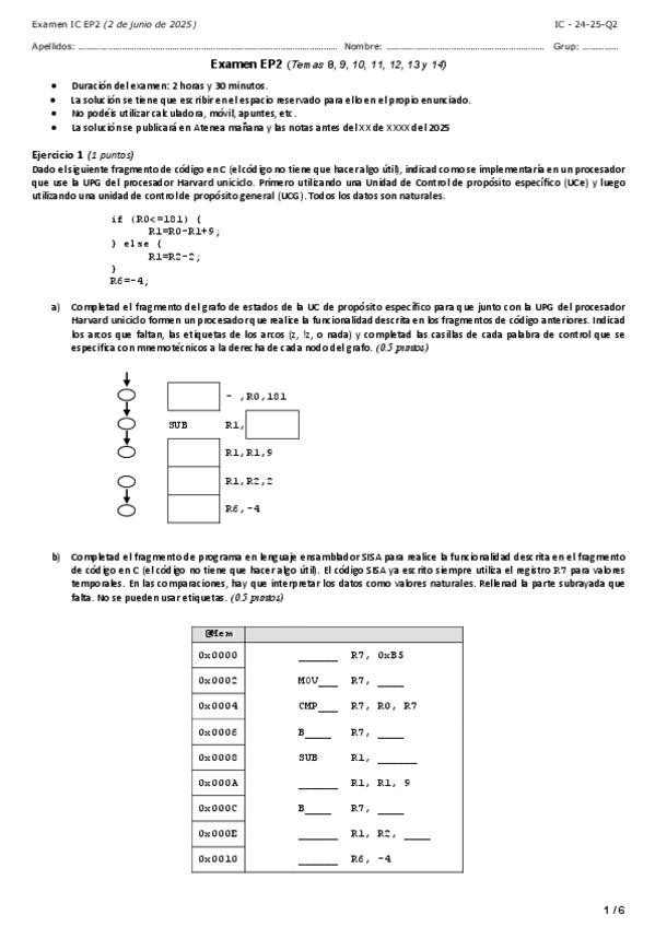 He publicado nuevos examenes de 1º Introducción a los Computadores: 24-25-Q2-EP2-Enunciat.pdf
