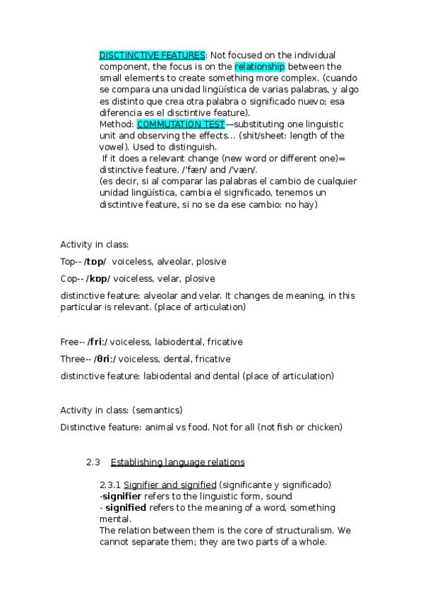 El tema 3 de lingüística para la práctica del lunes. Son apuntes breves, sirven para estudiar, pero para entender el tema primero diría de leerse los contenidos del profesor. Espero que sirva! :)