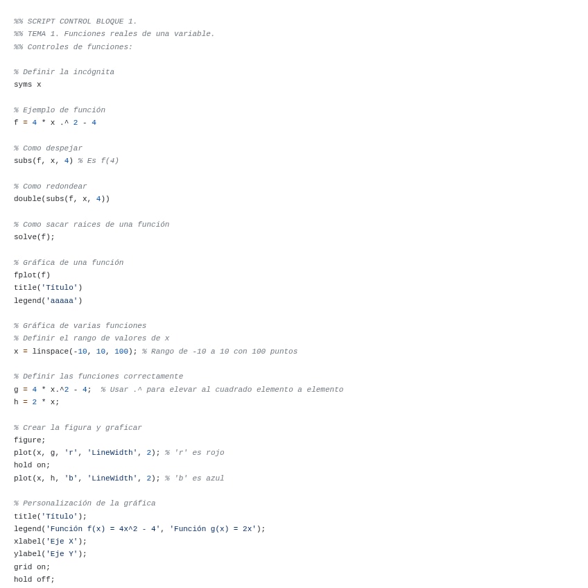 Código Matlab Ejercicios Bloque 1 DDV URJC