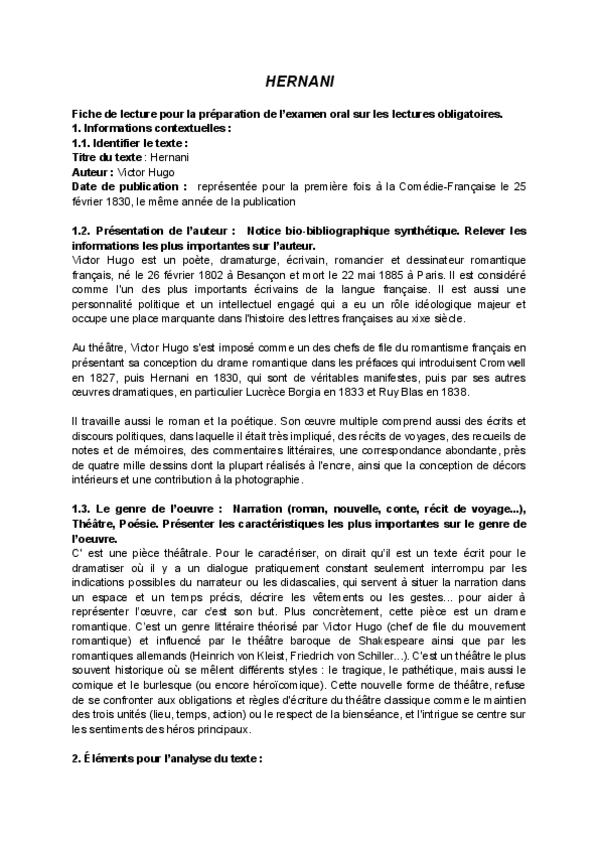 He publicado nuevos apuntes de 4º Introducción a los Textos Literarios en Lengua Francesa: HUGOHERNANI-subrayado.pdf