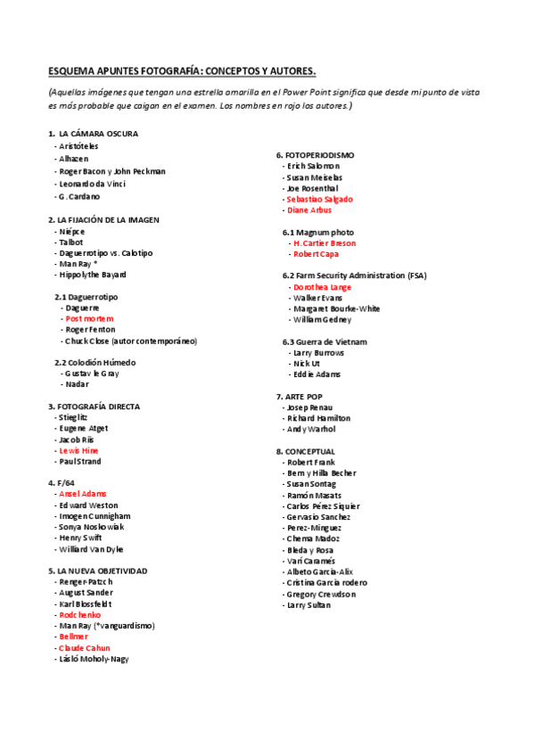 He publicado nuevos apuntes de 1º Introducción al Arte Fotográfico: PROYECTO-AUTORES.pdf
