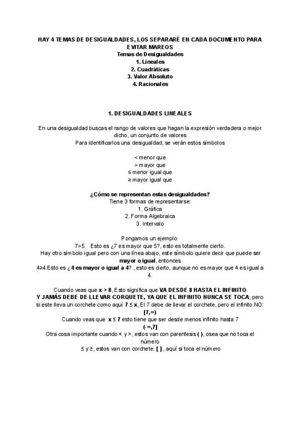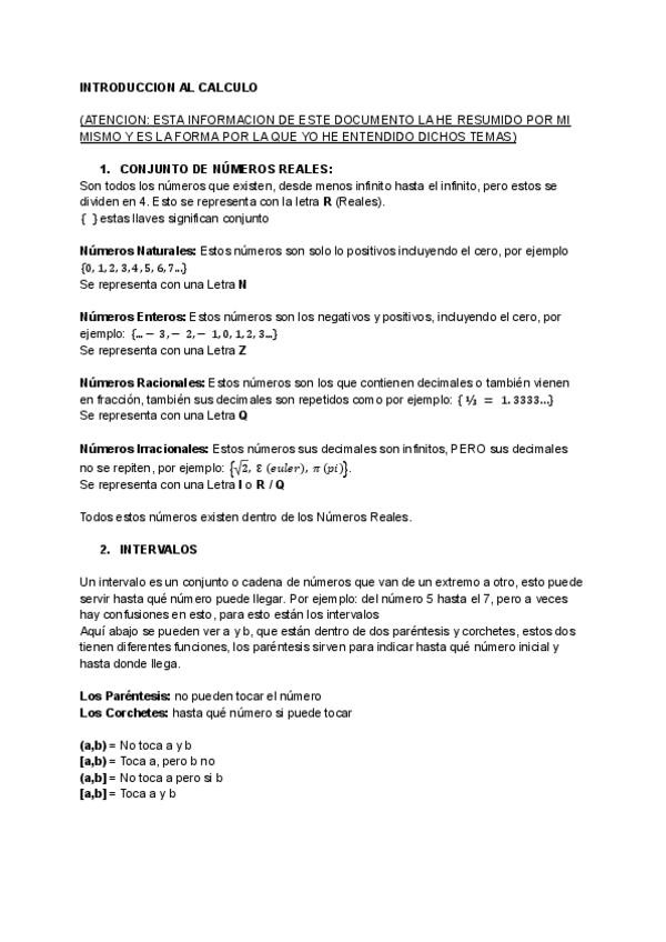 Información sobre los Números Reales, Intervalos y Desigualdades ESTE DOOCUMENTO ES DE PRUEBA, mas adelante veo si subo los siguientes temas