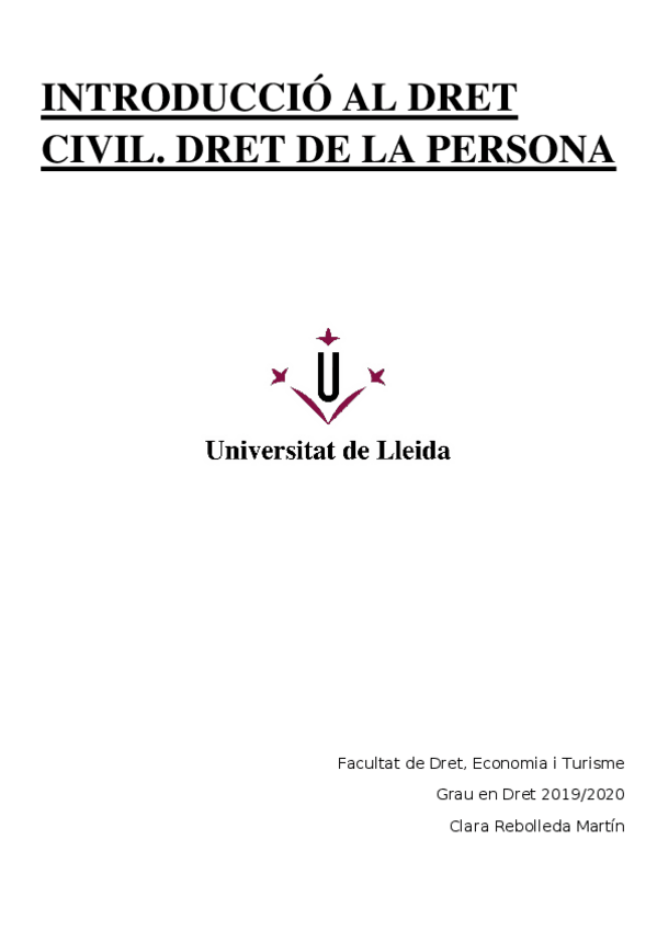 Introducció al Dret Civil. Dret de la Persona