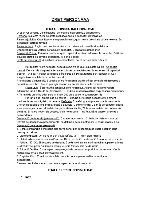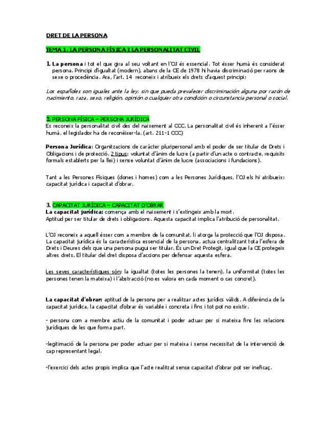 Apunts Dret Civil i Dret de Persona