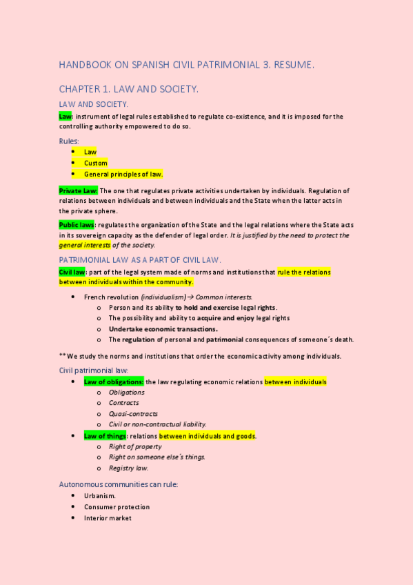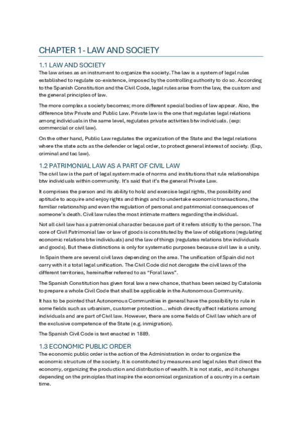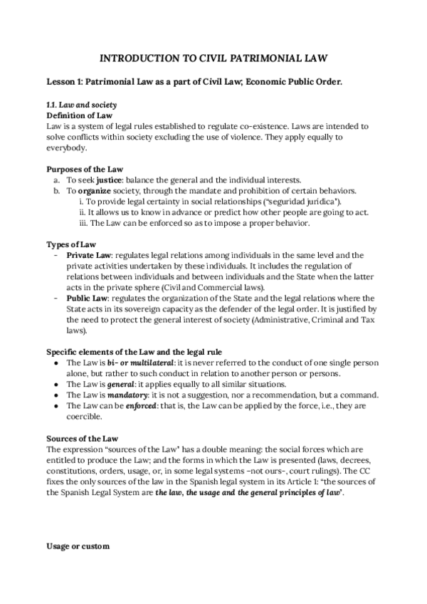 Apuntes de Introducción al derecho patrimonial de la UC3M Carrera de Economía en inglés / Bachelor's Degree in Economics
