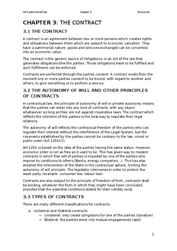 He publicado nuevos apuntes de 1º Introducción al derecho civil patrimonial: Chapter-3-the-contract.docx