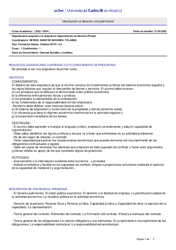PATRIMONIAL LAW UC3M 1año 1er semestre Economía Inglés