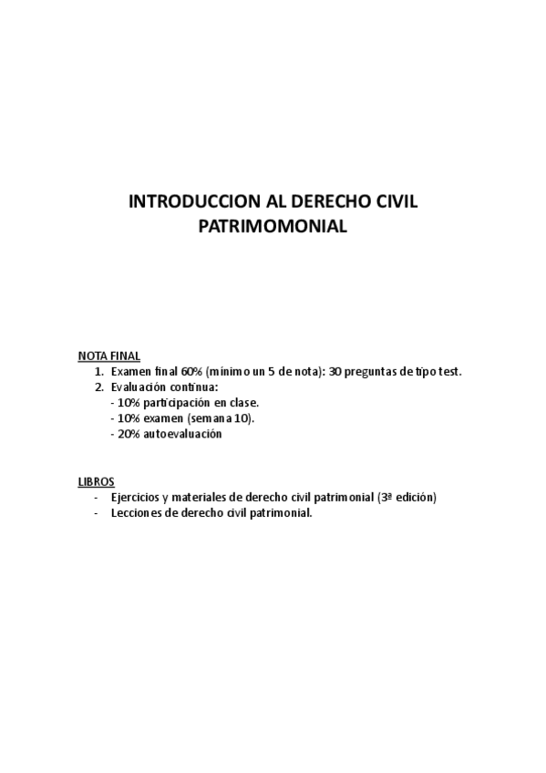 He publicado nuevos apuntes de 1º Introducción al derecho civil patrimonial: introducción al derecho civil patrimonial