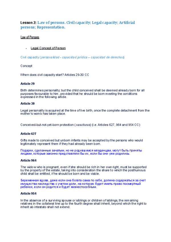 He publicado nuevos apuntes de 1º Introducción al derecho civil patrimonial: Lesson-2-Law-of-persons.-Civil-capacity-Legal-capacity-Artificial-persons-Representation..pdf