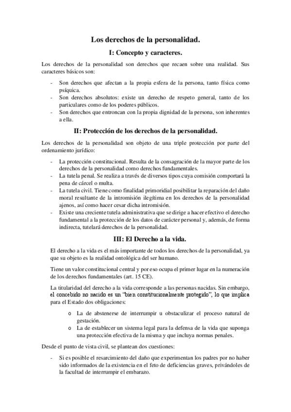 Apuntes de Introducción al derecho civil y derecho de la persona, segunda parte: “Derecho de la persona”. Primer año de derecho. Profesora: Antonia Nieto Alonso. USC/Derecho