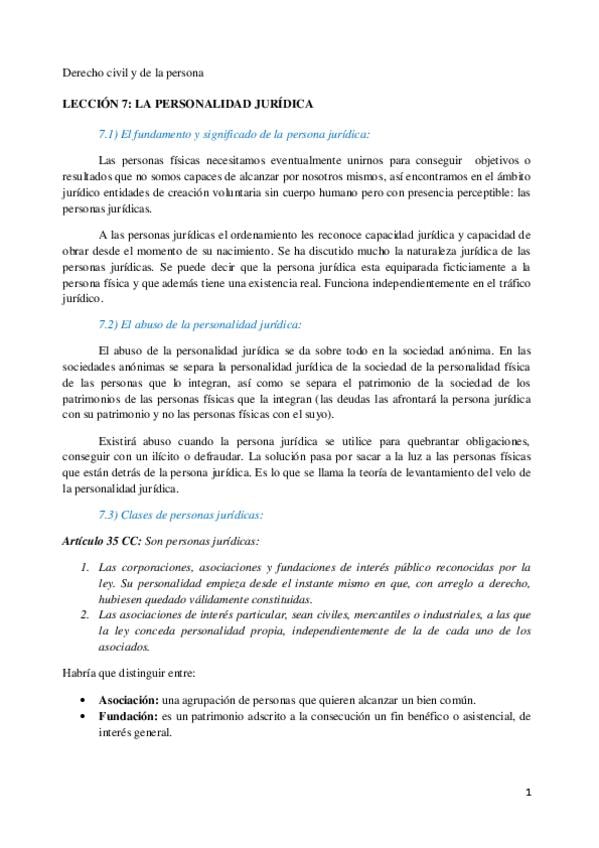 He publicado nuevos apuntes de 1º Introducción al derecho civil y derecho de la persona: Lección 7 - Personalidad jurídica.pdf