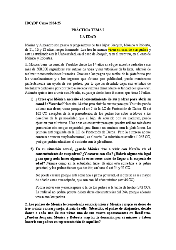 He publicado nuevos practicas de 2º Introducción al derecho civil y derecho de la persona: PRACTICA-Tema-7.pdf