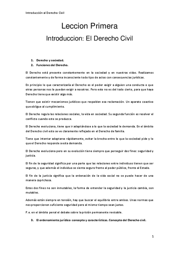 Temas del 1 al 3 de la asignatura de Introducción al Derecho Civil, correspondientes al primer parcial de la asignatura.