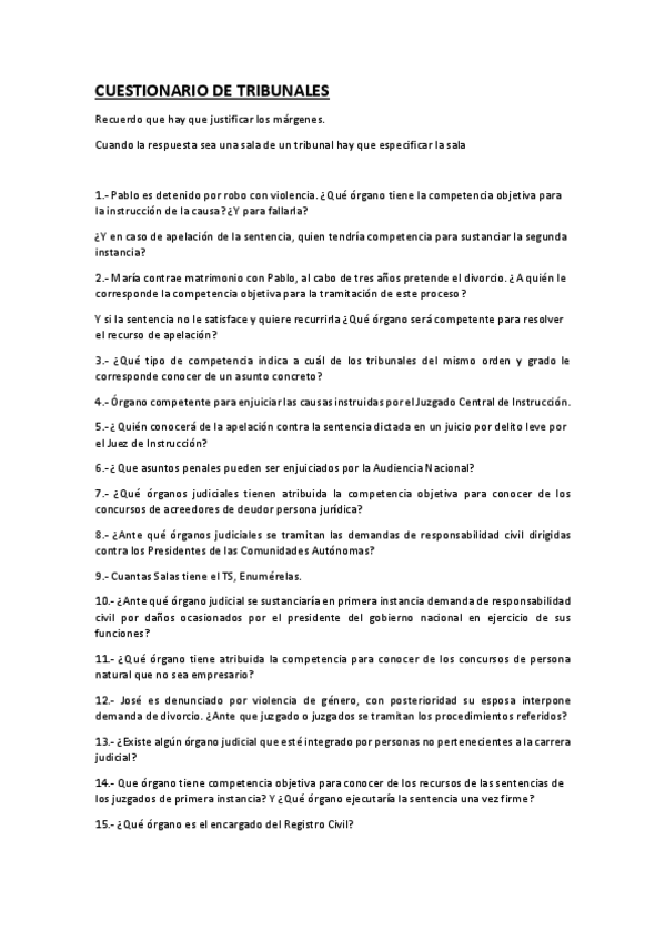 He publicado nuevos practicas de 2º Introducción Al Derecho Procesal: CUESTIONARIO-TRIBUNALES-II.pdf