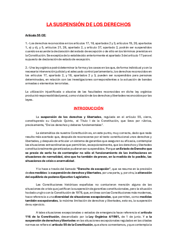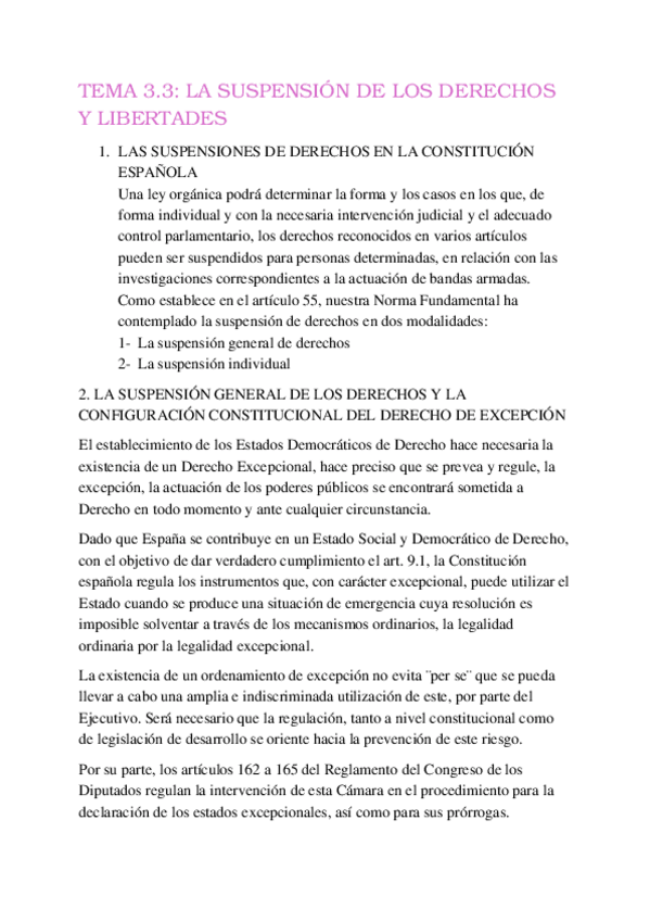 Apuntes Tema 3.3 La suspensión de los Derechos y Libertades, 1º de Criminología. Introducción al derecho público.