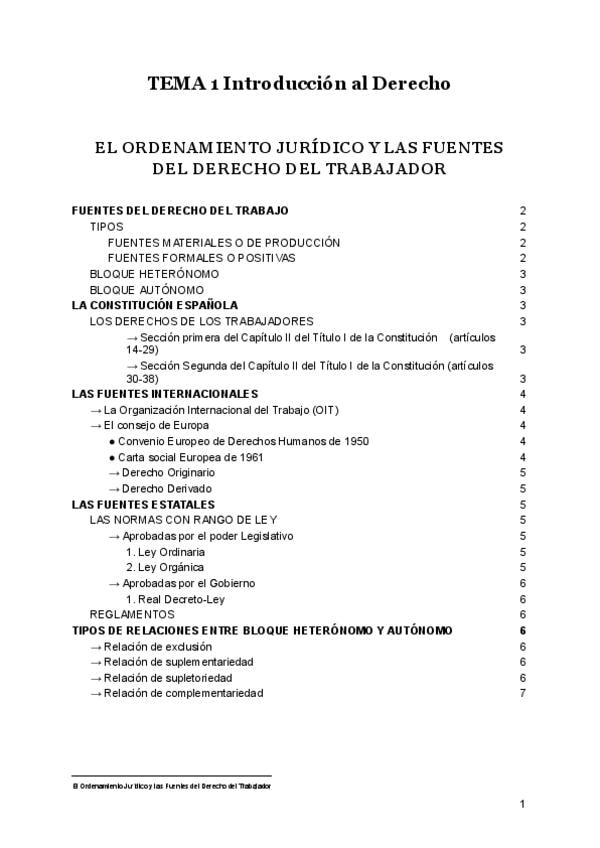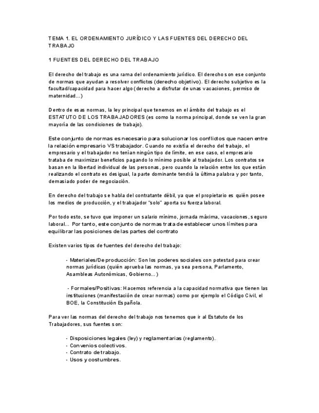 Apuntes muy completos del 1 Tema de Introducción al Derecho del Trabajador, con algunos ejemplos prácticos y anotaciones de profesorado