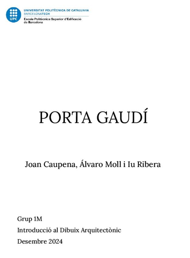 He publicado nuevos trabajos de 1º Introducción al Dibujo Arquitectónico: Treball-Porta-Gaudi.pdf