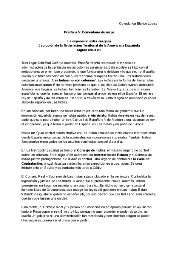 Comentario de mapa. Colonias americanas, formas de gobierno.