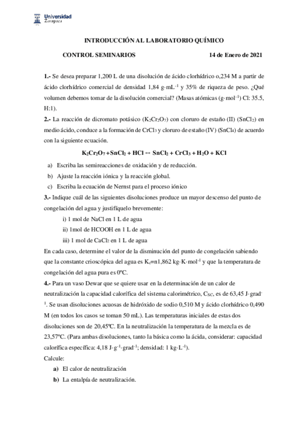 He publicado nuevos apuntes de 1º INTRODUCCION AL LABORATORIO QUIMICO: Seminarios segundo cuatri resueltos con enunciados.pdf