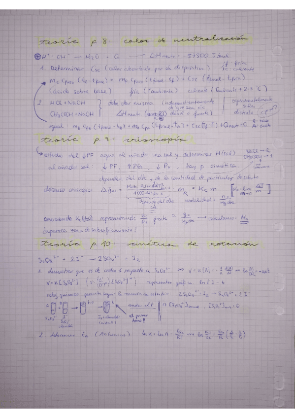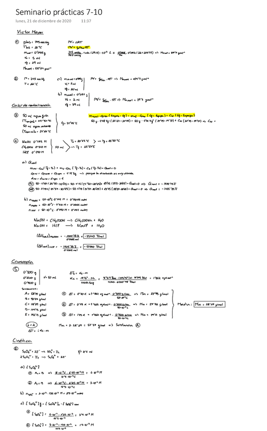 Notas de los informes: Neutralización: 7; Crioscopía: 8; Cinética: 10; Victor-Meyer: 9,5