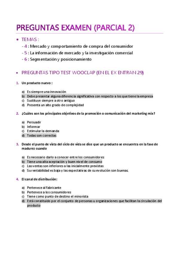 He publicado nuevos examenes de 1º Introducción al Marketing: Segundo parcial Intro al Marketing