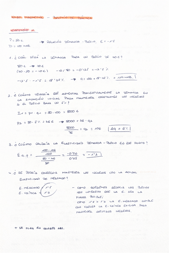 Saqué un 9 en la prueba. Todos ejercicios resueltos y fórmulas necesarias para sacar nota. Demanda y Parque.