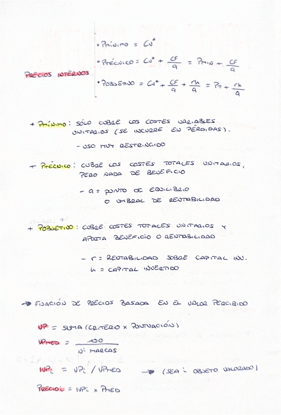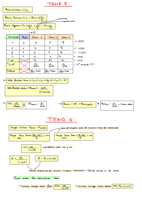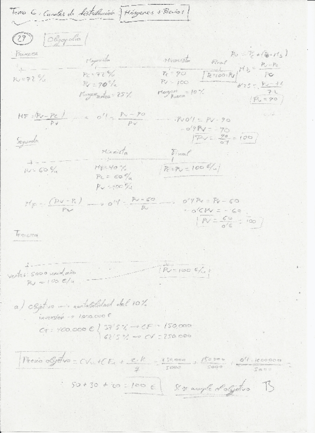 Todas las fórmulas necesarias de estos 2 temas: precios y canales de distribución. Saqué un 8.