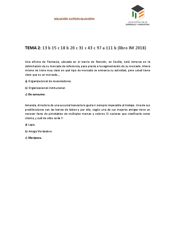 He publicado nuevos apuntes de 1º Introducción al Marketing: Solución autoevaluaciones