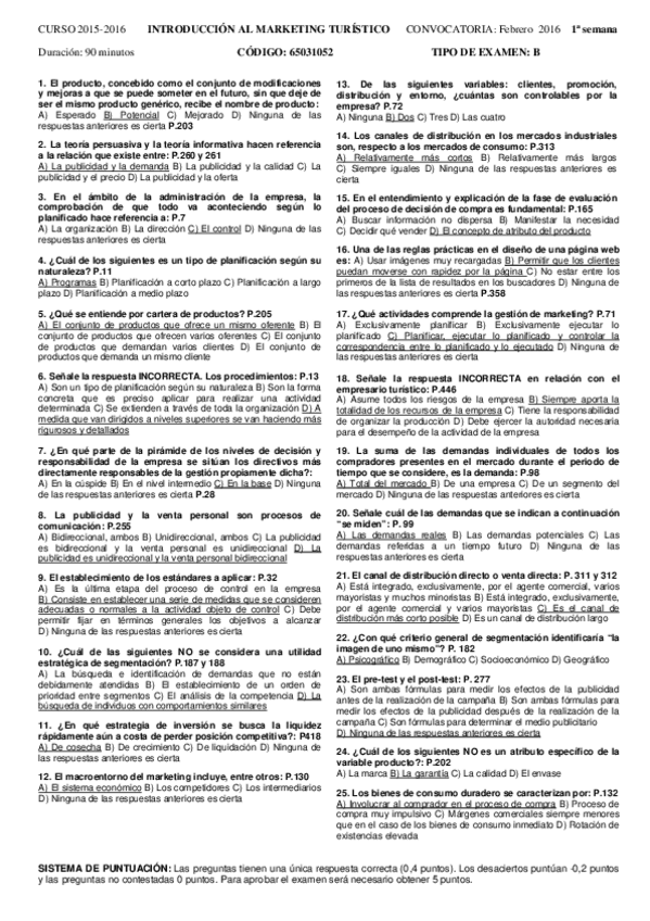 He publicado nuevos examenes de 1º Introducción al Marketing Turístico: 2016 Con Soluciones