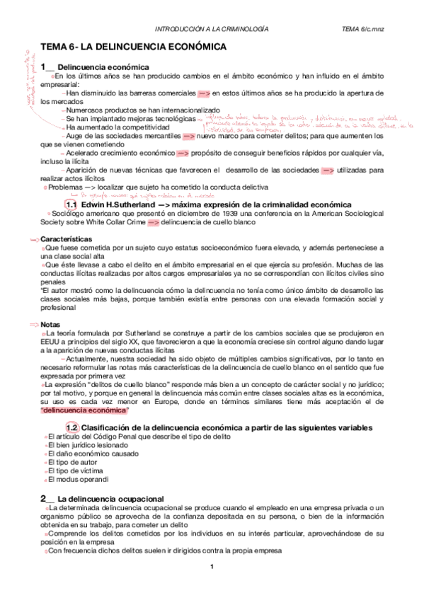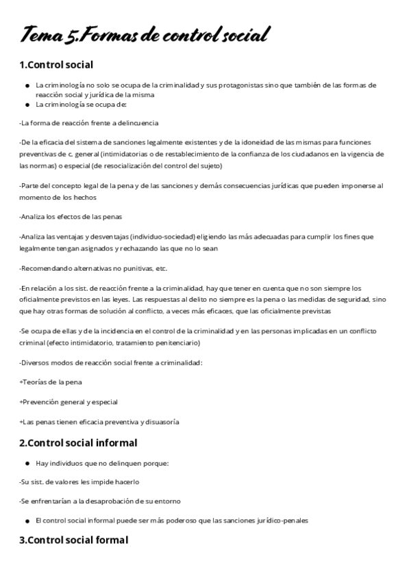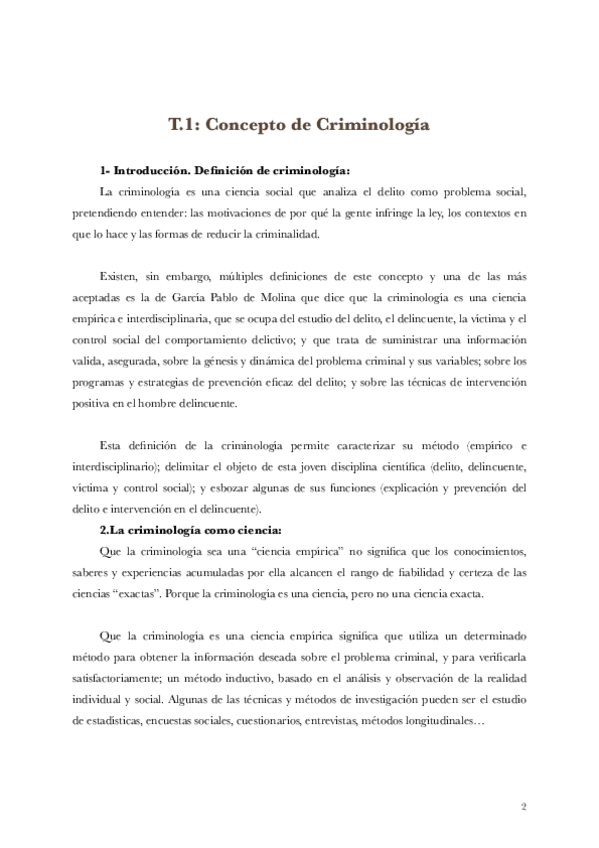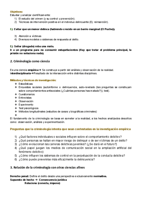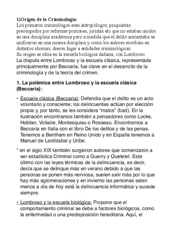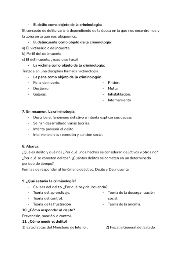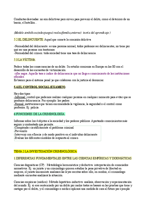 La primera parte es del tema 1-6. Solo esquemas de clase. El segundo es a partir del tema 6 + apuntes del manual introducción a la criminología.