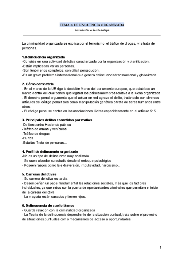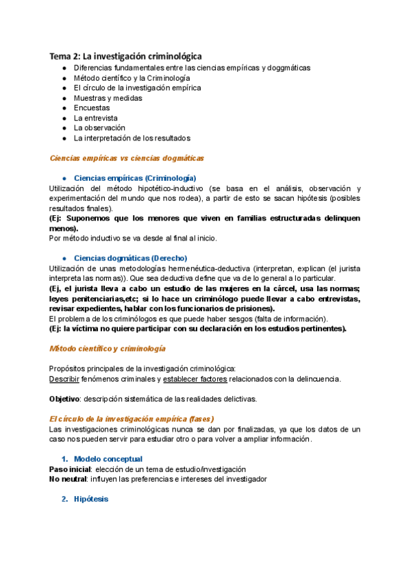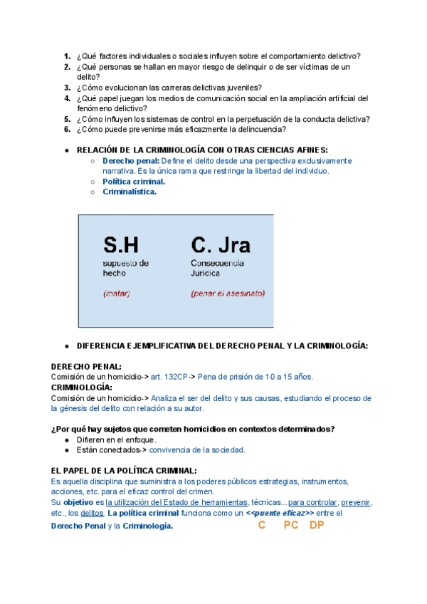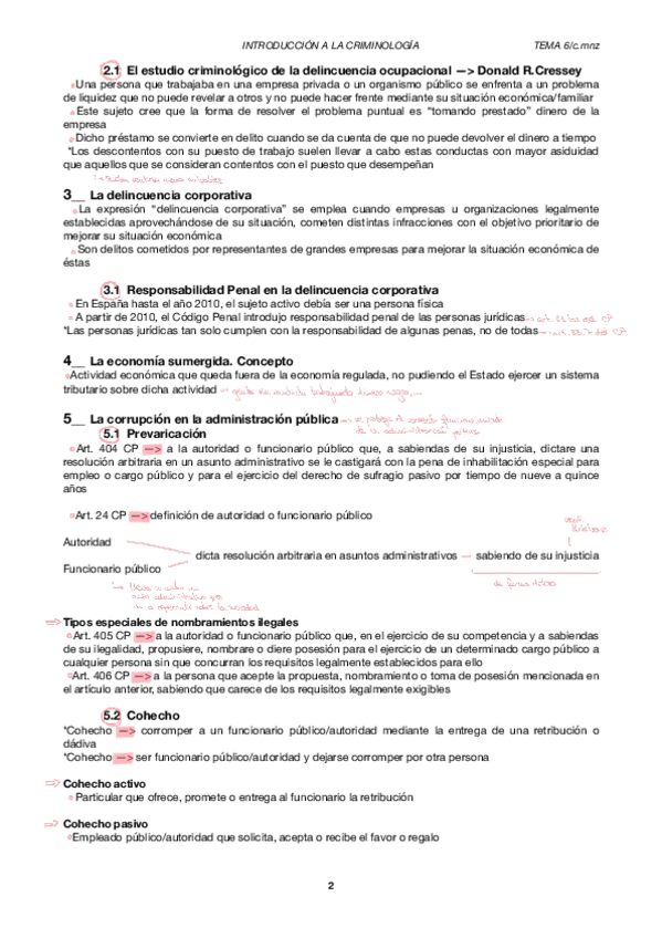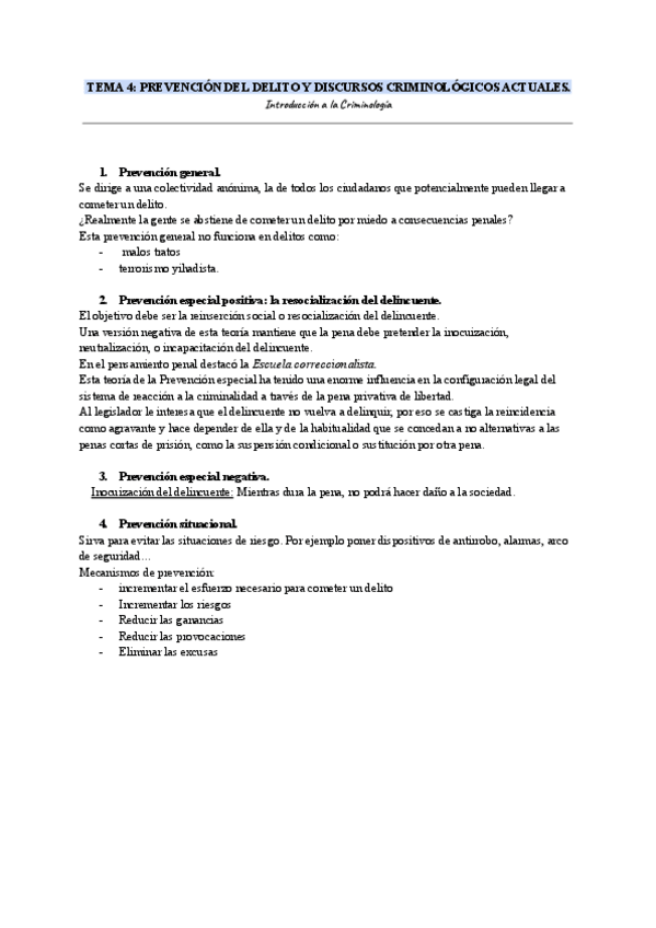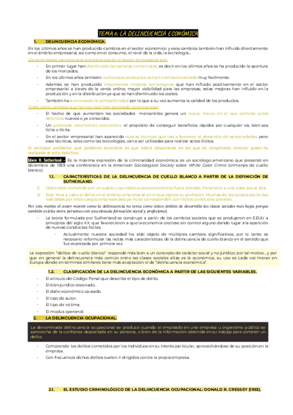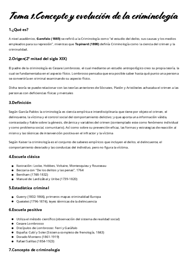La primera parte es del tema 1-6. Solo esquemas de clase. El segundo es a partir del tema 6 + apuntes del manual introducción a la criminología.