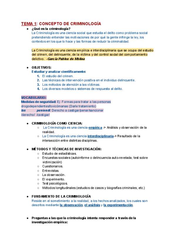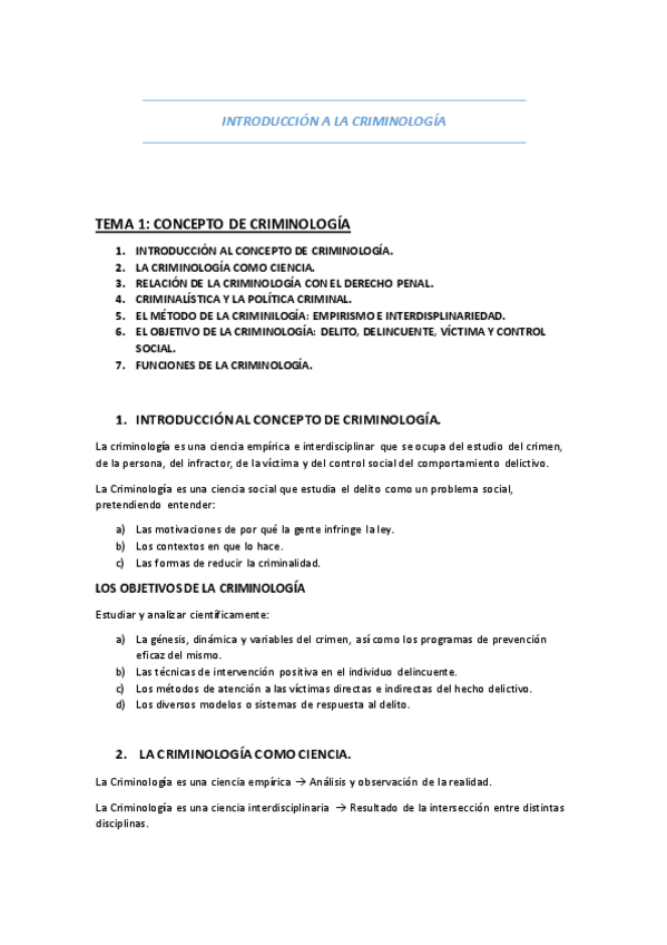 TODOS LOS TEMAS INTRODUCCIÓN A LA CRIMINOLOGÍA