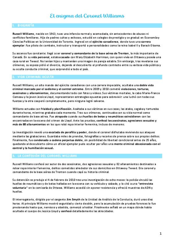 He publicado nuevos apuntes de 4º Investigación Criminal: Perfil e Informe Criminológico: CORONEL-WILLIAMS.pdf