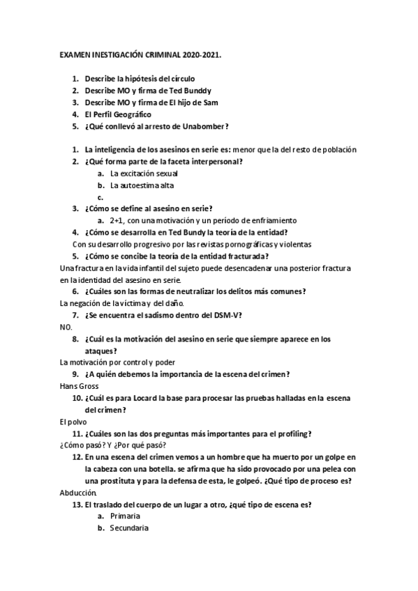 He publicado nuevos examenes de 4º Investigación Criminal: Perfil e Informe Criminológico: EXAMEN-INESTIGACION-CRIMINAL-2020.pdf