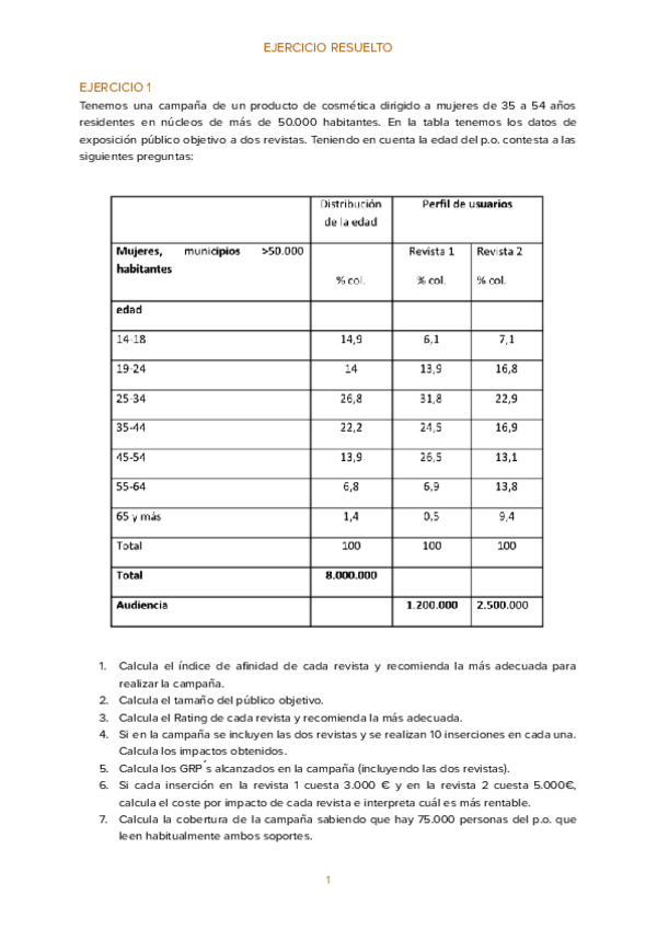 Ejercicios prácticos investigación de audiencias y planificación de medios