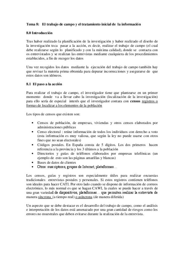 He publicado nuevos apuntes de 4º Investigación de Mercados: Tema 8. La investigación de campo.pdf