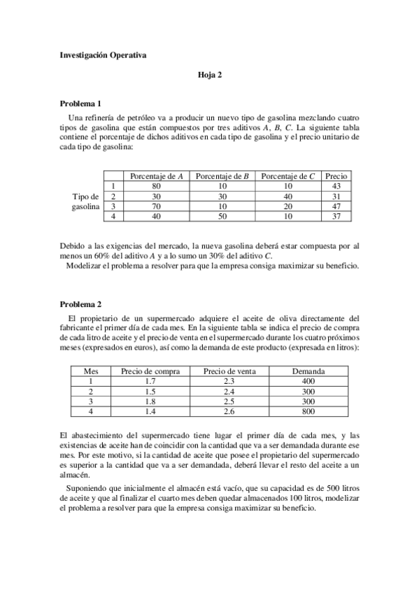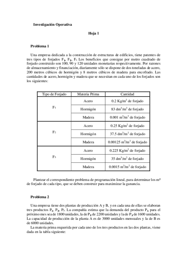 He publicado nuevos ejercicios de 2º Investigación Operativa: Investigación operativa hoja 1.pdf