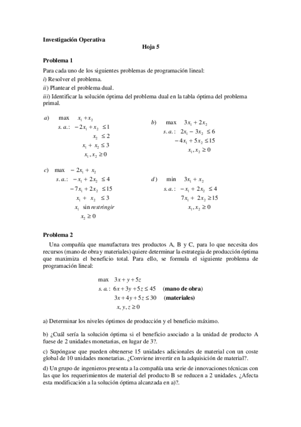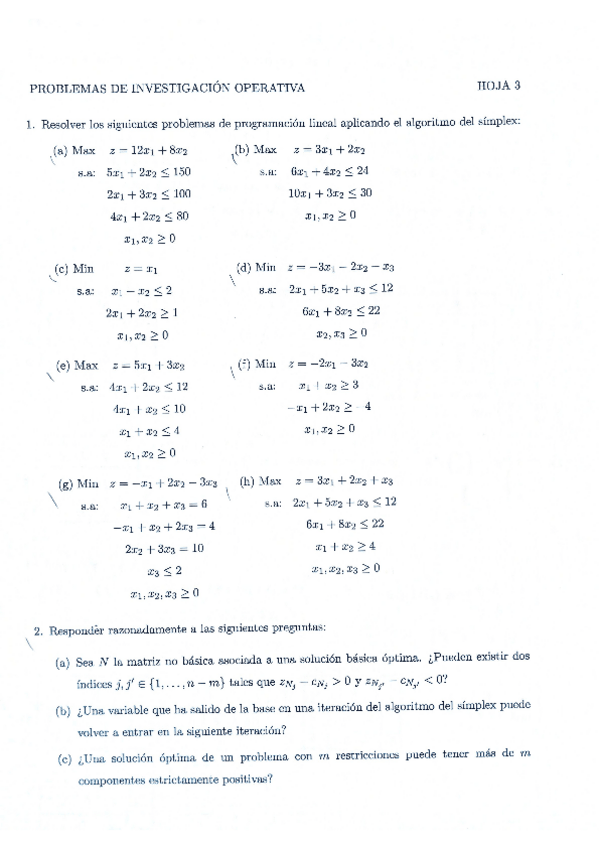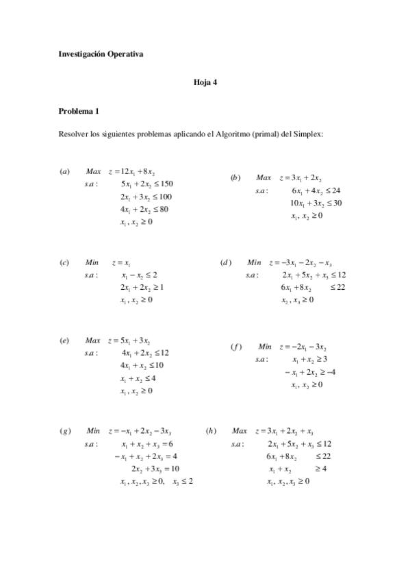 He publicado nuevos ejercicios de 2º Investigación Operativa: hoja 0 con soluciones.pdf