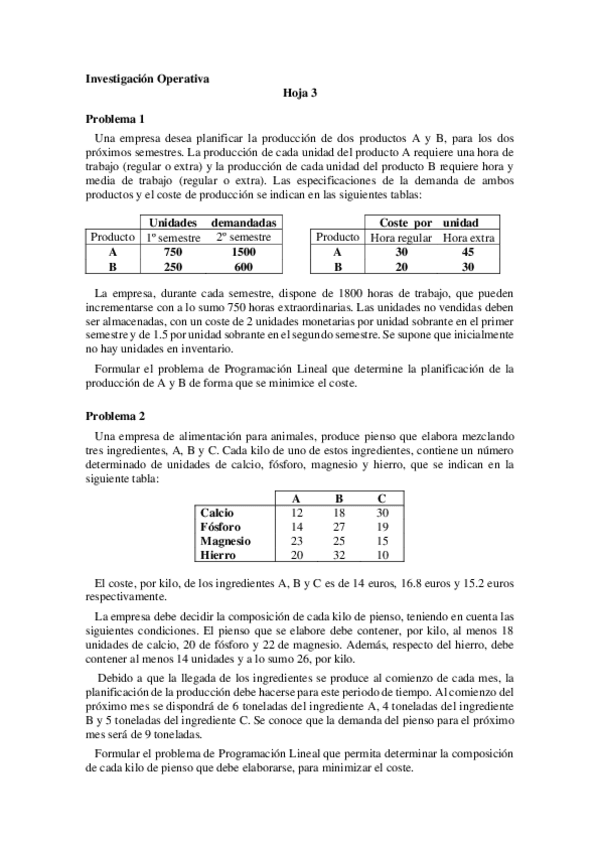 He publicado nuevos ejercicios de 2º Investigación Operativa: Investigación operativa hoja 3.pdf