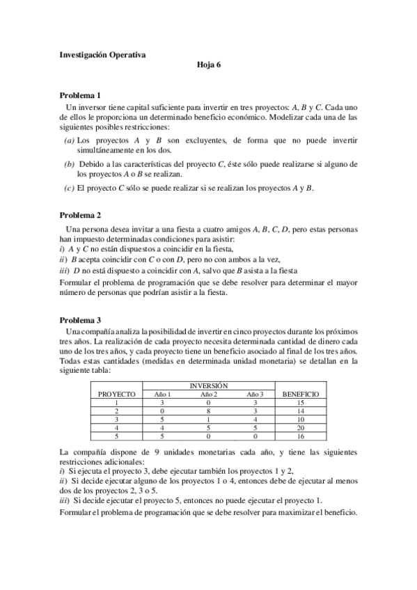 He publicado nuevos ejercicios de 2º Investigación Operativa: hoja 6 soluciones.pdf