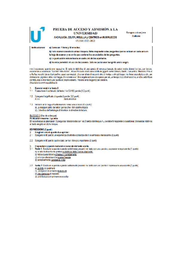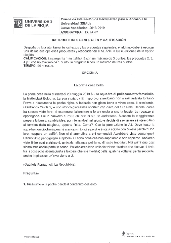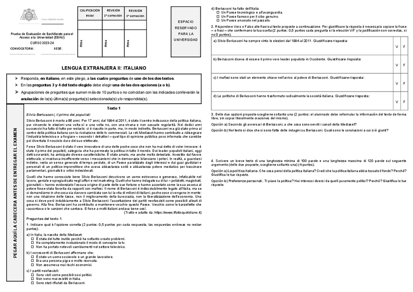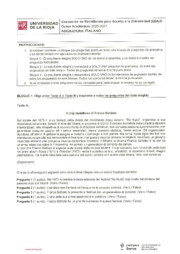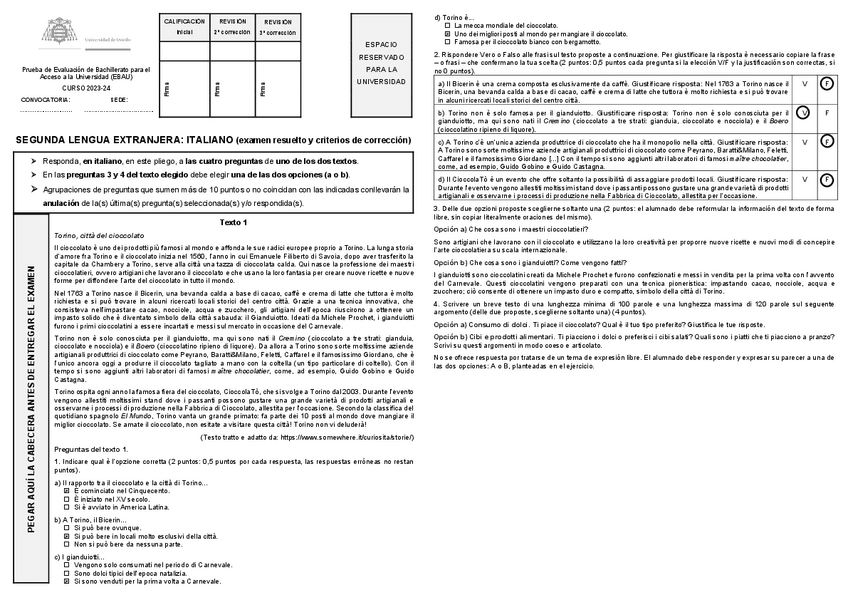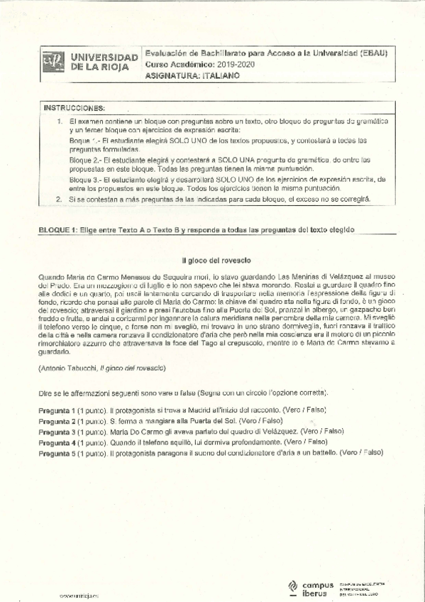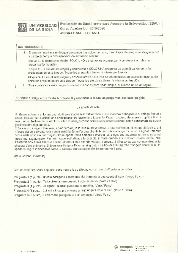 Examen EBAU Italiano