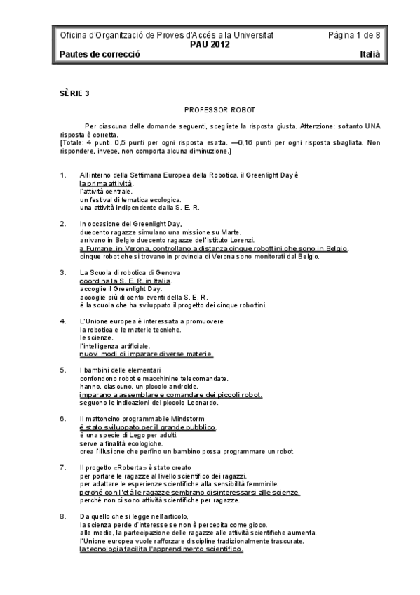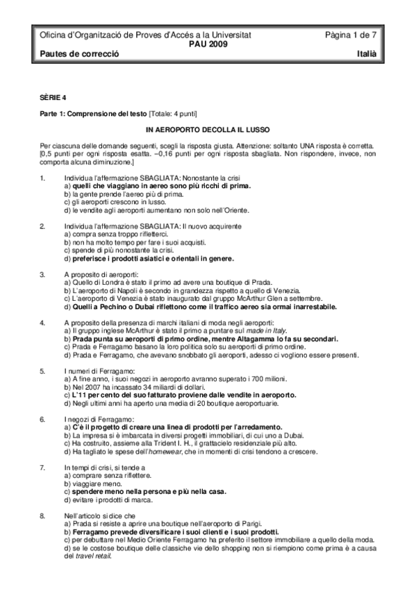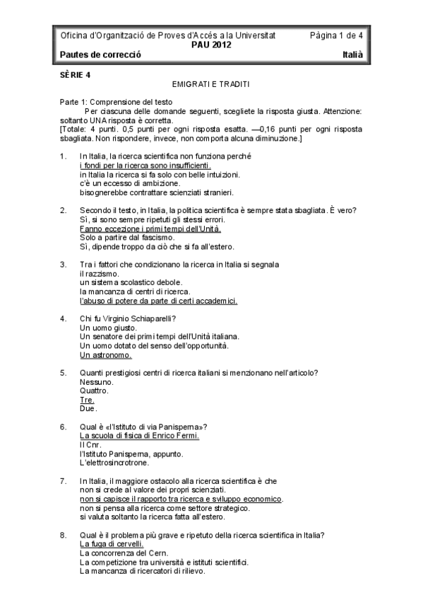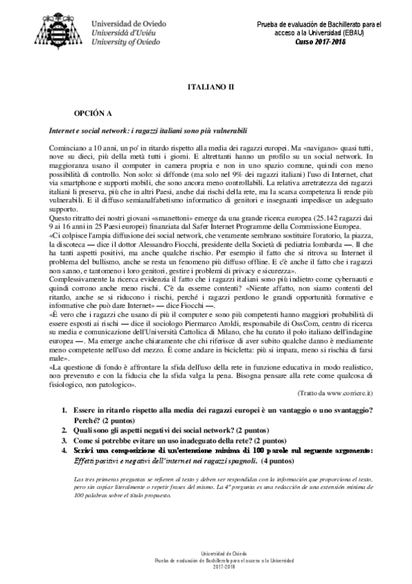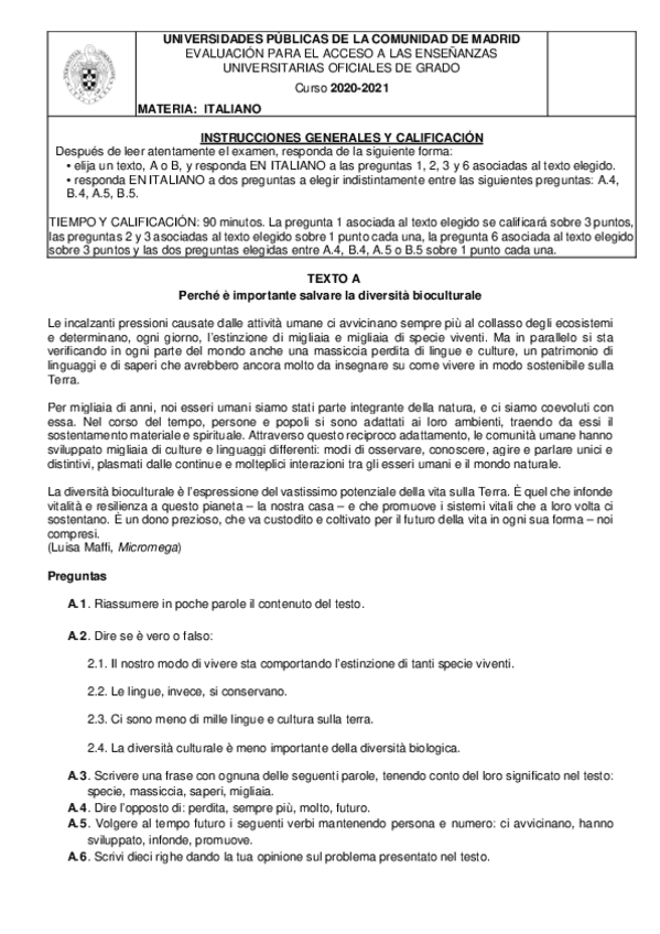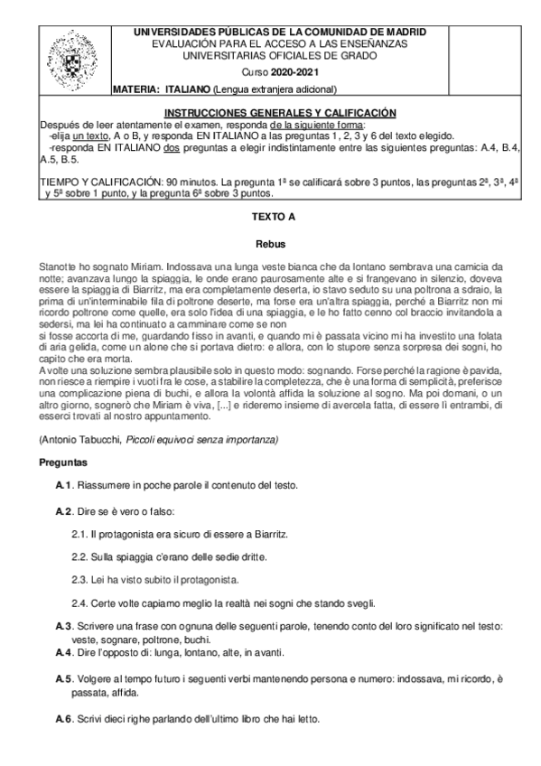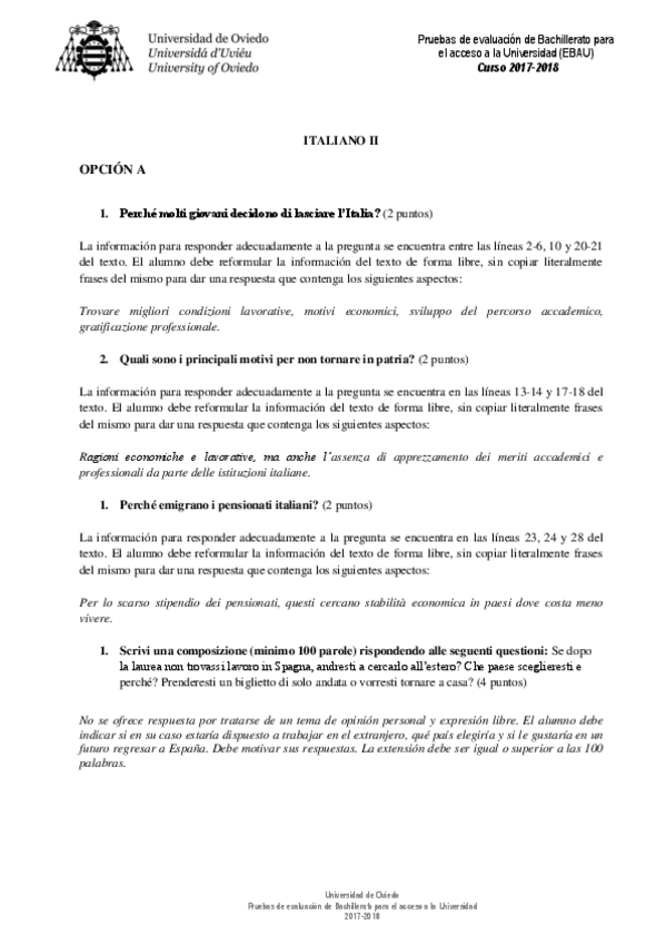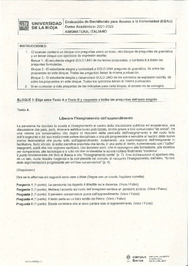 Examen EBAU Italiano