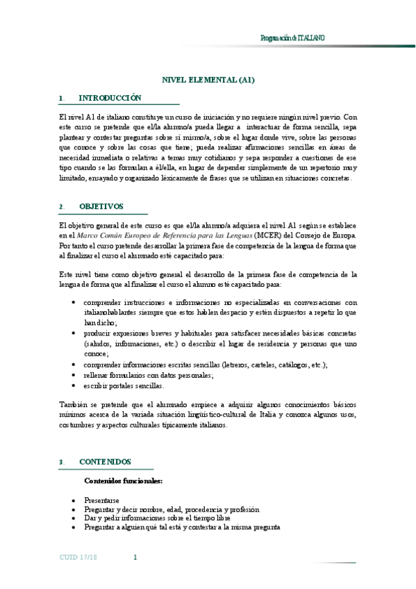 IDIOMA MODERNO (ITALIANO I)