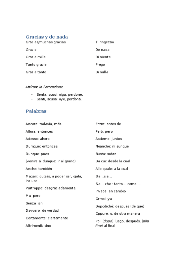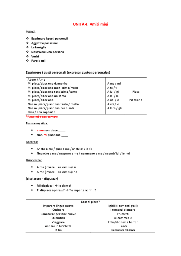 Los apuntes son basados en el libro "Nuovo Contatto A1", al que le he añadido lo impartido en las clases de la EOI (Escuela Oficial de Idiomas). Espero que les sirva